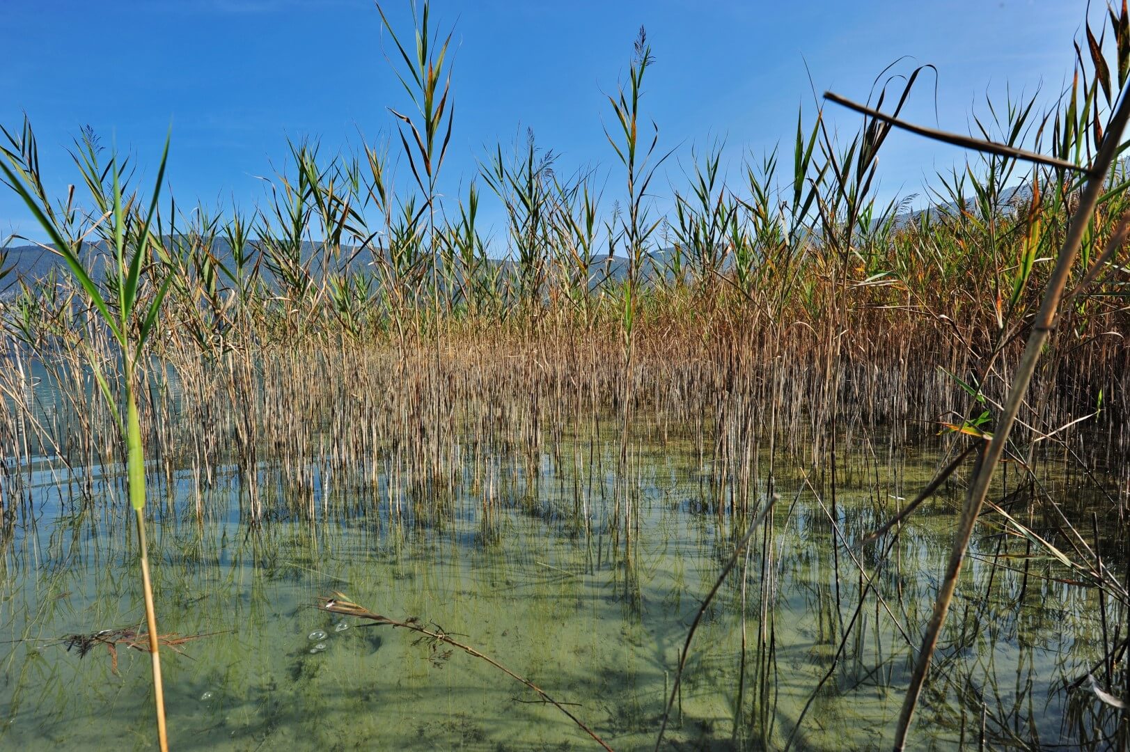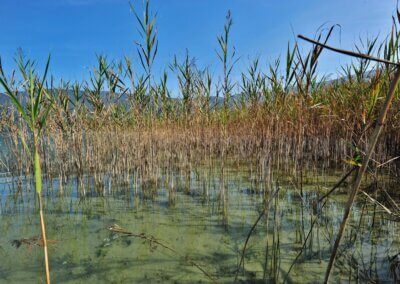 Les végétations aquatiques – roselières, scirpaies et herbiers immergés – constituent un pilier du fonctionnement écologique du lac d’Aiguebelette. Elles offrent des habitats essentiels pour la faune, participent à l’oxygénation et à la filtration de l’eau, stabilisent les sédiments et contribuent fortement à la qualité paysagère du site.